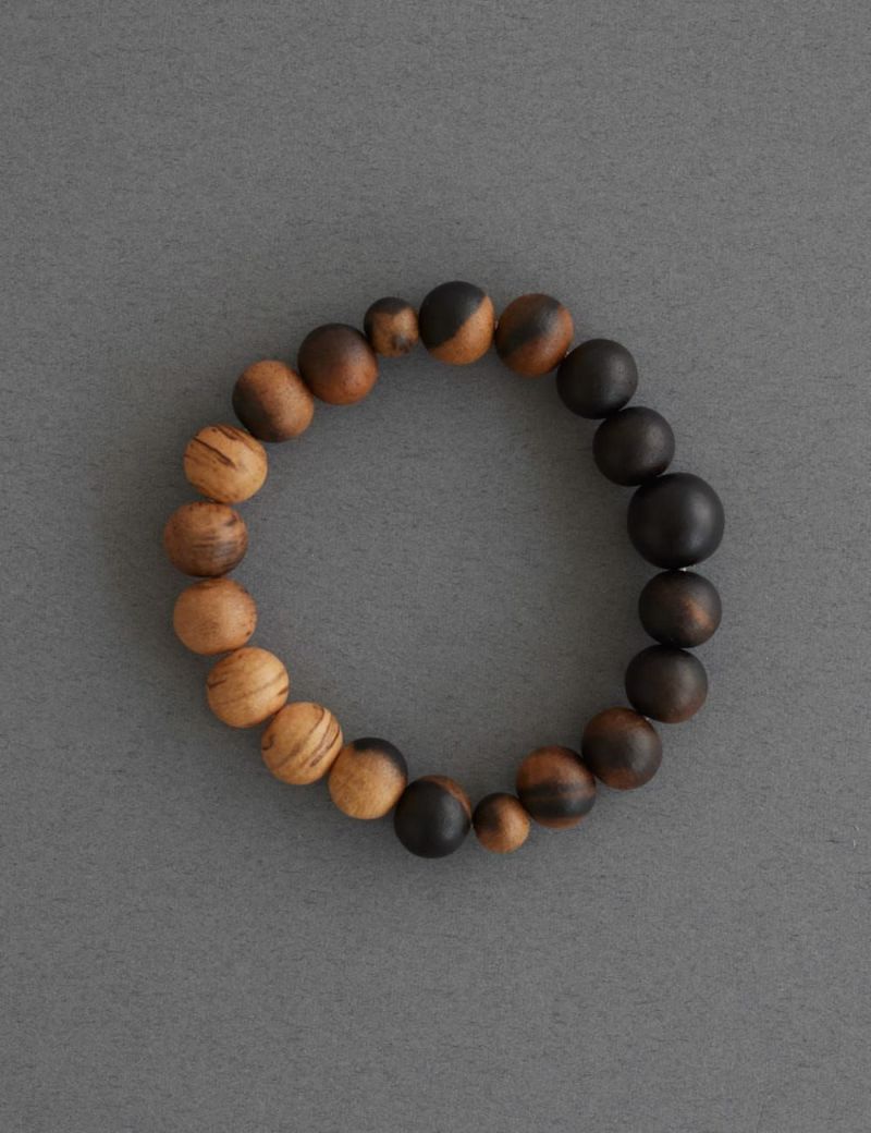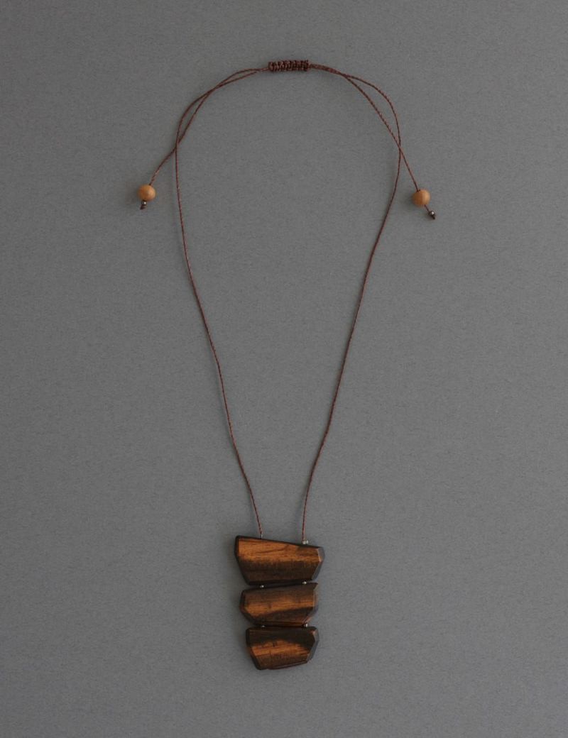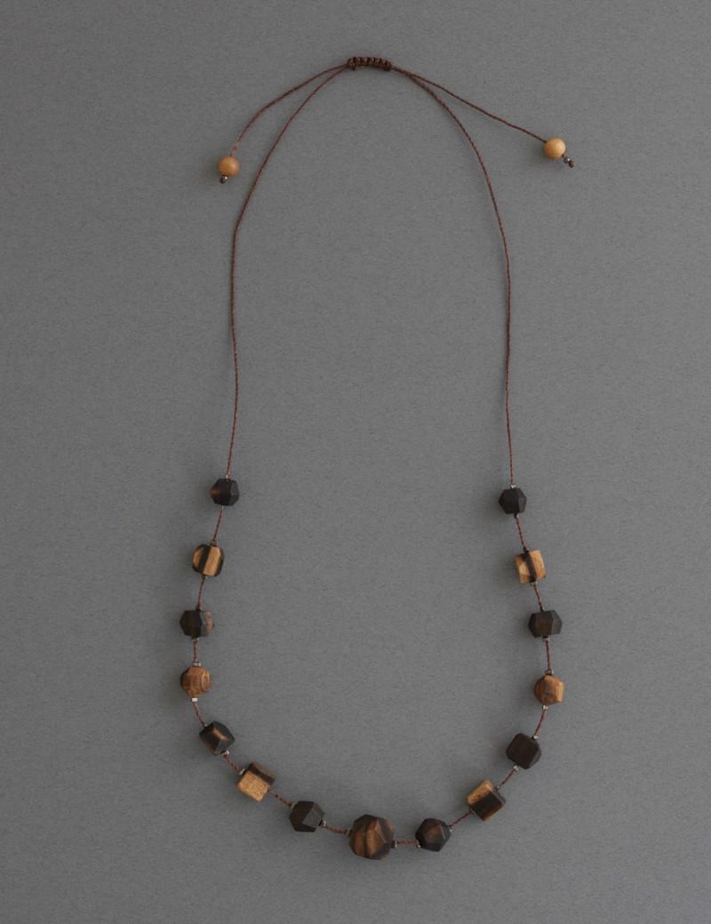 木芸品をとおして、かつての島根の作り手たちの足跡を尋ねるおかや木芸では、その技を活かし、今のライフスタイルに合ったものづくりをつづけています。おかや木芸と群言堂が共同開発した黒柿のチョーカーやブレスレットといったアクセサリーは、岡さんの娘さんが中心となって制作を進めました。おかや木芸のものづくりは、次の世代にもつながっています。
