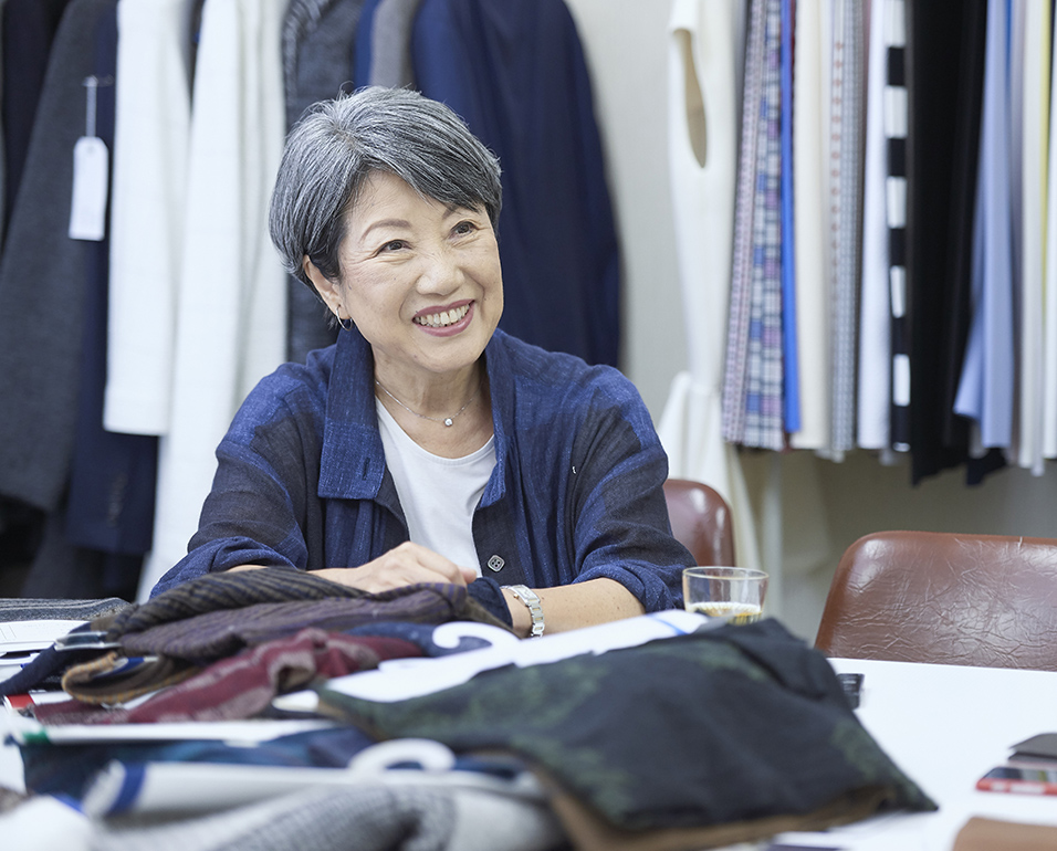 「私はそれまでニットは専門外で、わからないことだらけだったんです。そうしたら、『どういうものが作りたいか、とにかく想いをいっぱい伝えていただければ何でも作りますから』と言ってくださったの」(折井)