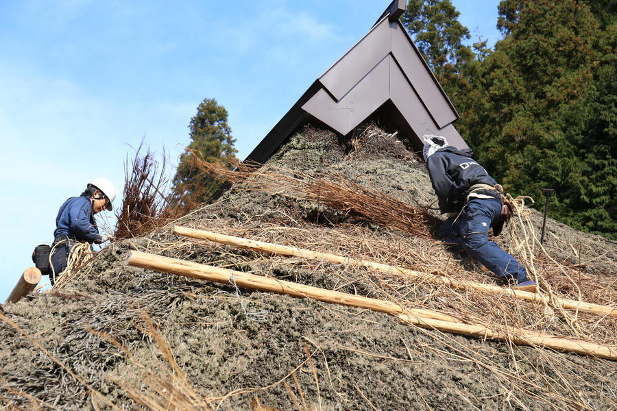 2017年、13年ぶりに行われた「鄙舎(ひなや)」の茅葺き屋根、葺き替えの様子をプレイバック!当時の臨場感あふれるレポートを、お楽しみください。