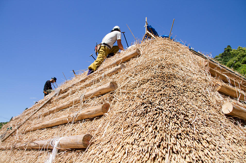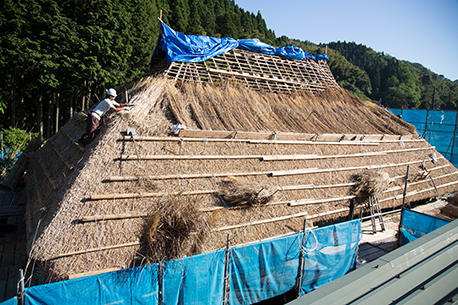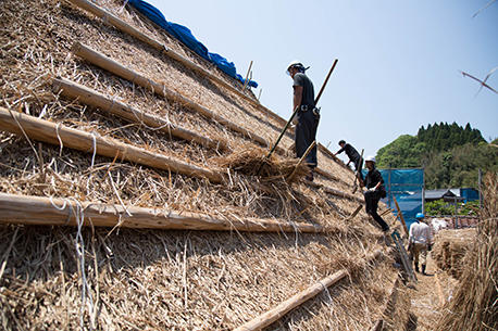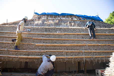 2017年、13年ぶりに行われた「鄙舎(ひなや)」の茅葺き屋根、葺き替えの様子をプレイバック!当時の臨場感あふれるレポートを、お楽しみください。