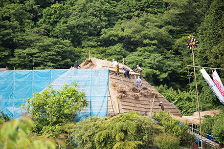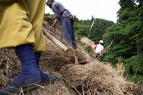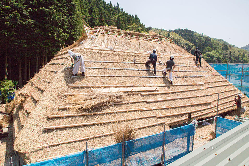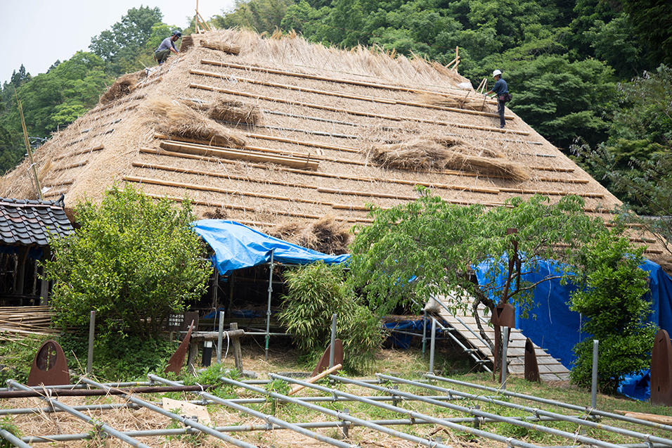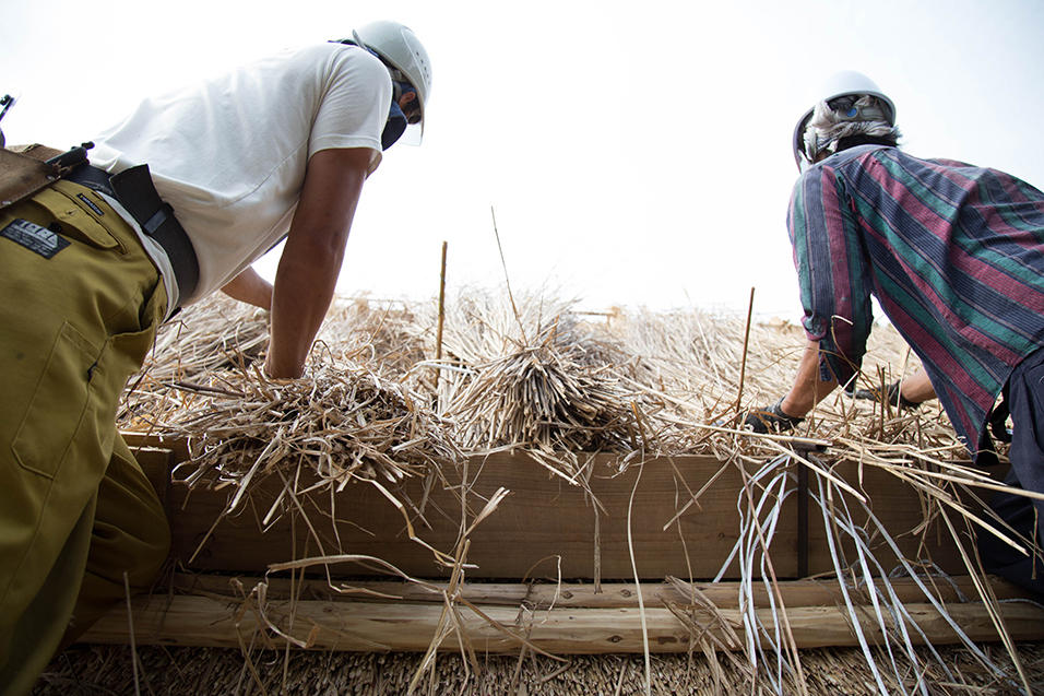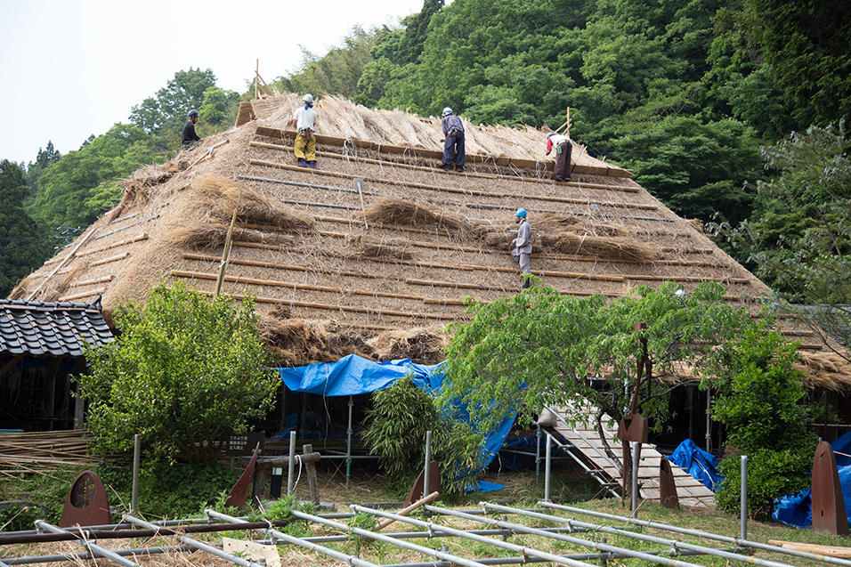 2017年、13年ぶりに行われた「鄙舎(ひなや)」の茅葺き屋根、葺き替えの様子をプレイバック!当時の臨場感あふれるレポートを、お楽しみください。