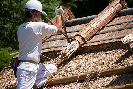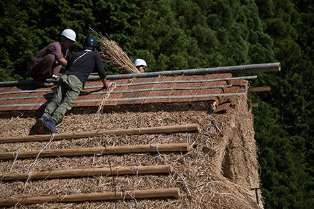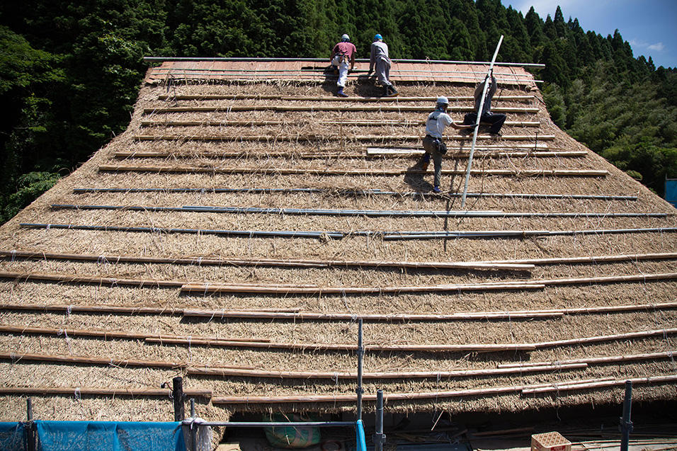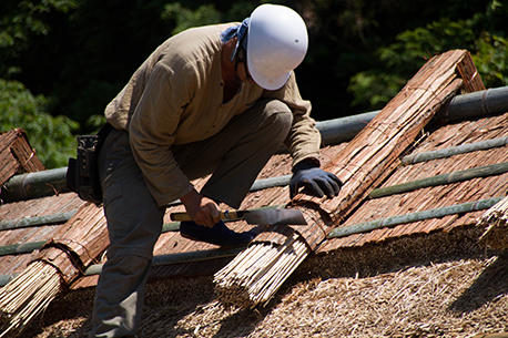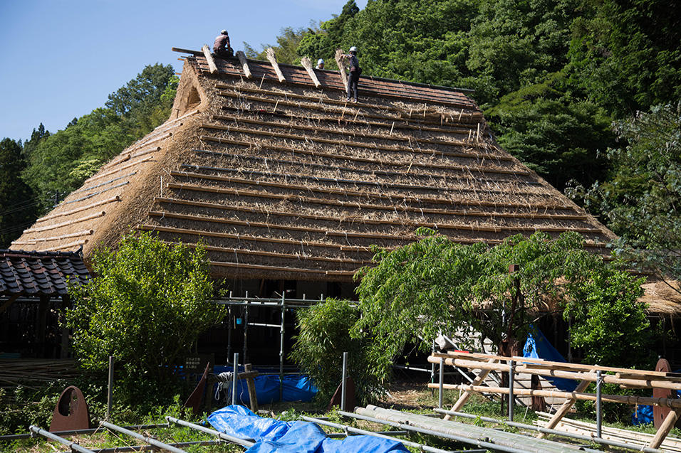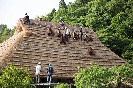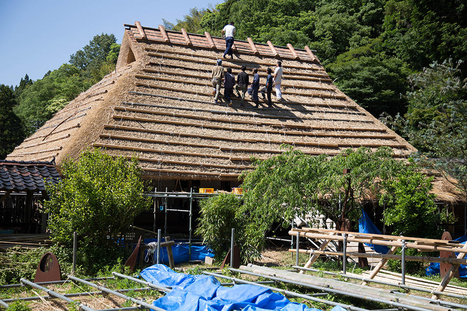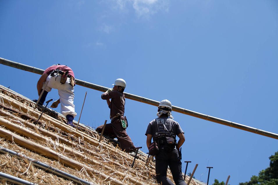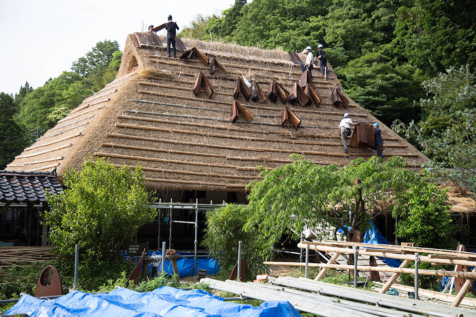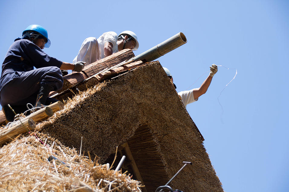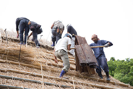 2017年、13年ぶりに行われた「鄙舎(ひなや)」の茅葺き屋根、葺き替えの様子をプレイバック!当時の臨場感あふれるレポートを、お楽しみください。