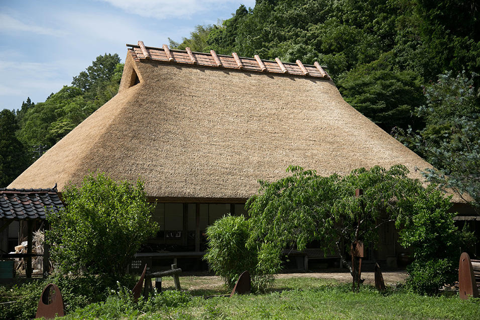 日の光に1本1本の茅が輝く、優しい曲線の美しい茅葺屋根に生まれ変わりました。