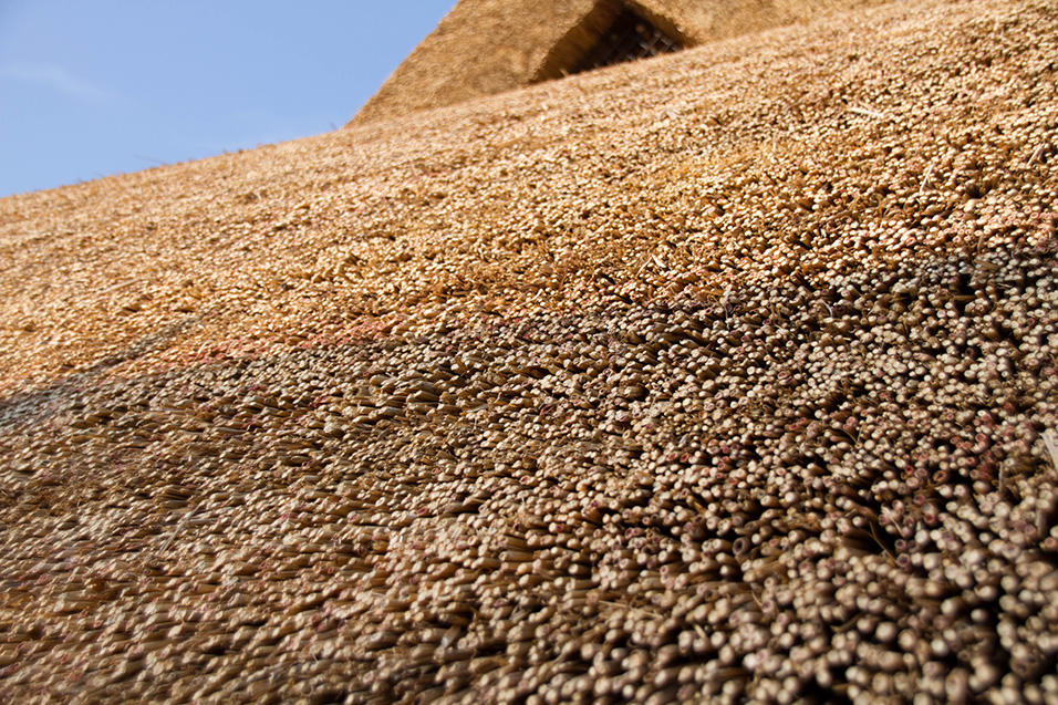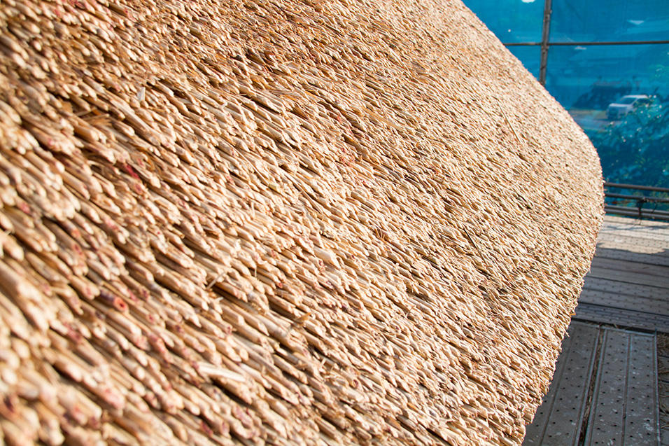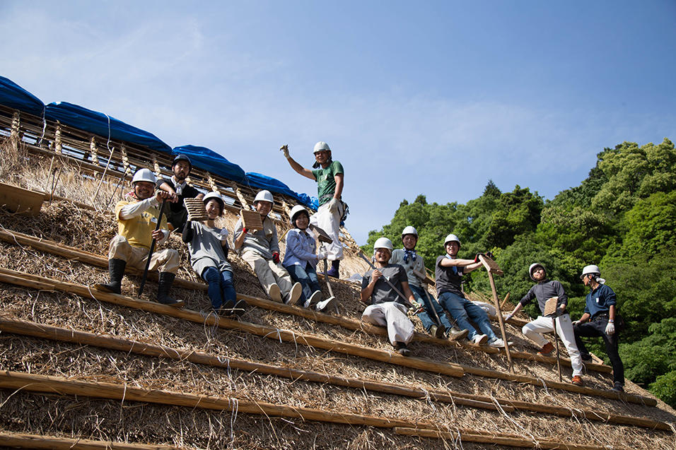 それからおおよそ3か月間、職人さんたちがお陽さまとともに作業をし、雨の日にはお休みという自然まかせのスケジュールで仕事を続けて、稲の苗が青々と元気に成長している6月下旬、ついに葺き替えは完了しました。