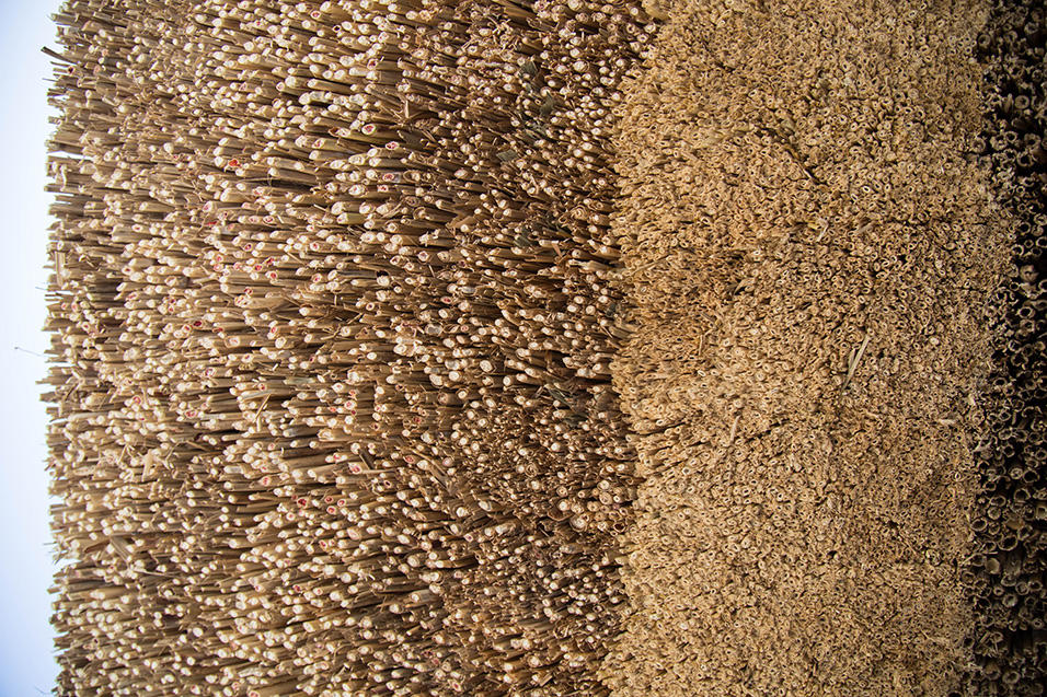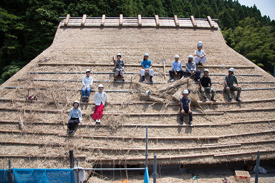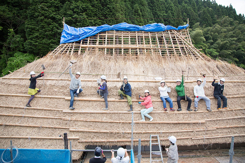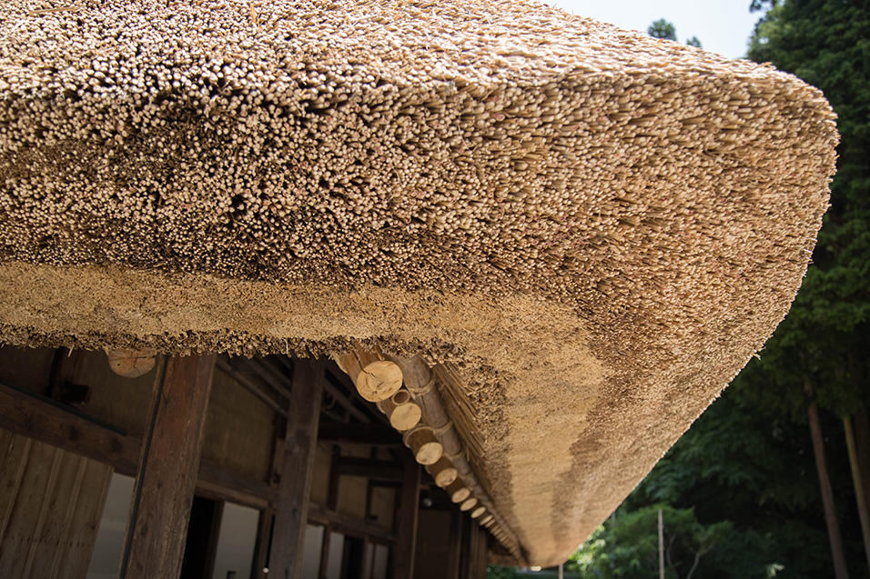 田植え前の3月下旬、鄙舎の茅の葺き替えは始まりました。