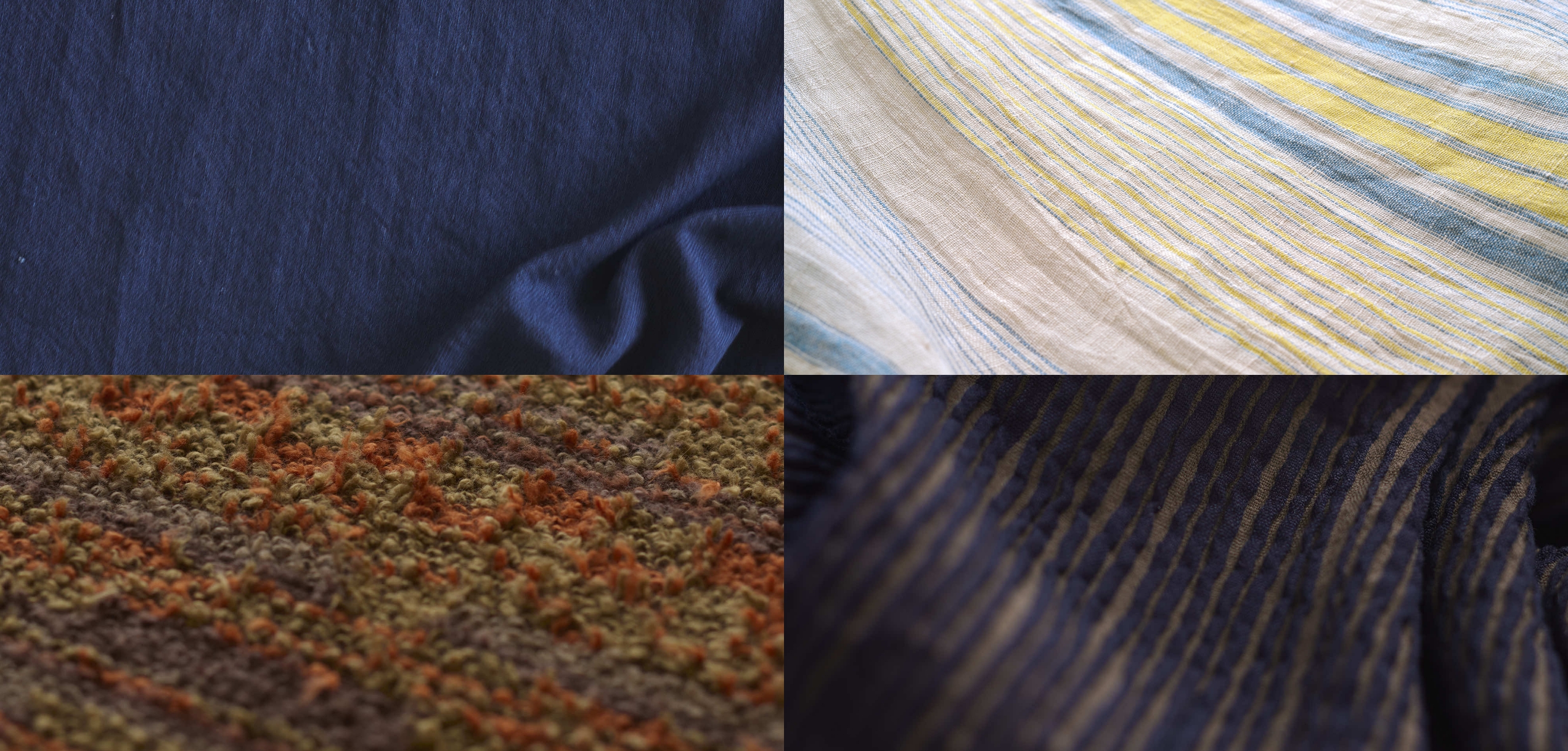 “旬”は、ふつうは食に使われる言葉ですが、布や服にも、年2回、暑くなる前や寒くなる前に引き出しの中身を変える衣替えに見られるように、季節ごとの“旬”があります。でももっと細かく見れば、服のそれぞれにぴったりの“旬”があります。それは例えば、麻なら夏向きというように素材で決まるところもありますが、それだけではなく、厚さや織り方などでも変わり、それらの要素が合わさって“旬”の布になり、衣服が作られています。